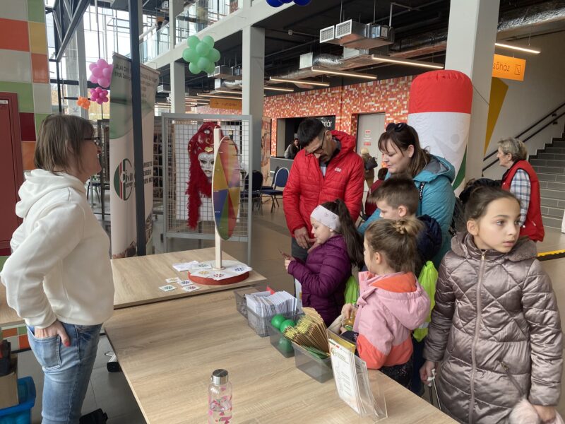 A Civil Központ két munkatársa szerencsekerékkel és apró ajándékokkal várta a kicsiket és nagyokat.