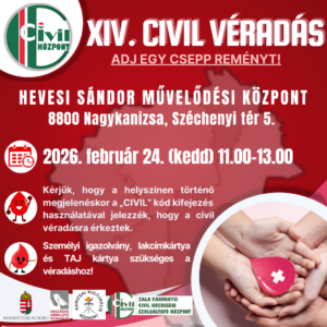 ➡️2026. február 24. (kedd) 11:00-13:00 – HEVESI SÁNDOR MŰVELŐDÉSI KÖZPONT (8800 Nagykanizsa, Széchenyi tér 5.)