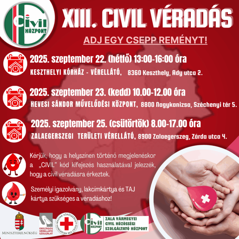 2025. szeptemberében ismét Civil véradóhét immár XIII. alkalommal.
