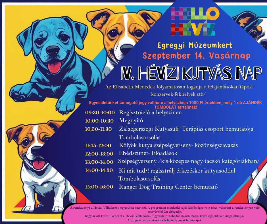 A Hévízi Vállalkozók Egyesülete IV. alkalommal rendezi meg Hévízen a Kutyás napot.